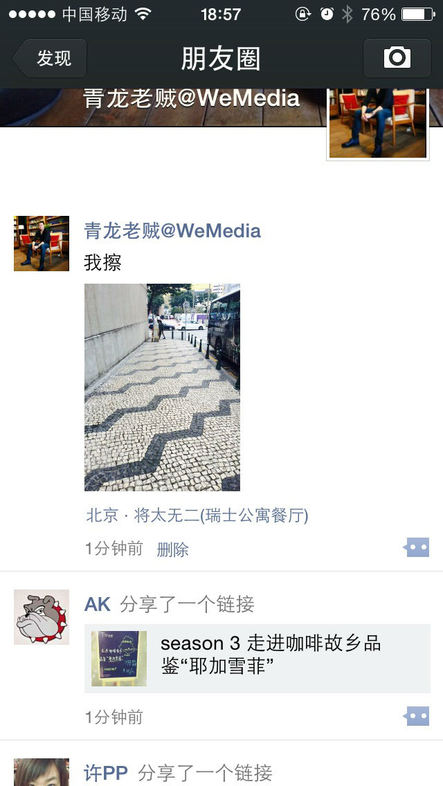 首先是在朋友圈图片分享时强化突出了所在位置这个选项,而之前的版本地理位置分享都是灰色的,在左下角很不显眼。