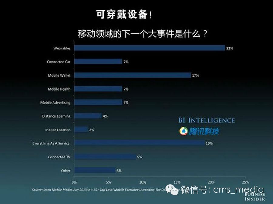 接下来,这个情况或许会改变。移动市场接下来的“Big Thing”会是什么?这些都值得考虑:可穿戴设备、移动支付、互联网电视、联网汽车、移动医疗、移动广告、在线教育以及一切服务性产业。