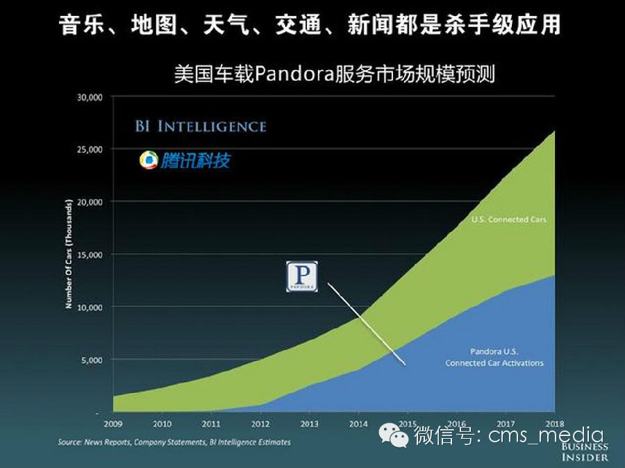 在智能联网汽车里,音乐、地图、天气、交通、新闻等都会成为杀手级应用。