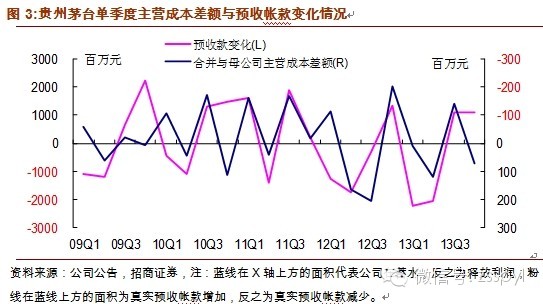 说明2:粉线高出蓝线的面积代表的是真正的预收帐款增加了,粉线低于蓝线则说明真实预收帐款被消化了。比如2007 年3季度其实是增加了真实预收帐款,08年1、2 季度是不让增加真实预收帐款,3 季度、4季度旺季真实预收帐款增加。09年1季度真实预收帐款大减,因为后面进入淡季,且有主动控货的原因,到目前来讲真实预收款数额不大。