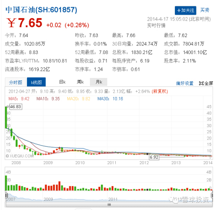 “文君能有几多愁,恰似满仓中石油”:中石油上市开出48元天价(图片46.83是经前复权的价格,以下图片均经前复权处理!),如今股价只有最高峰的16.3%。