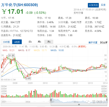 化学:以前的烟台万华:53.9%
