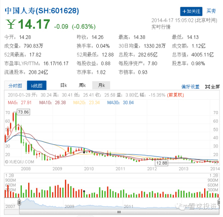再来看看最大市值的保险股:中国人寿,19.18%