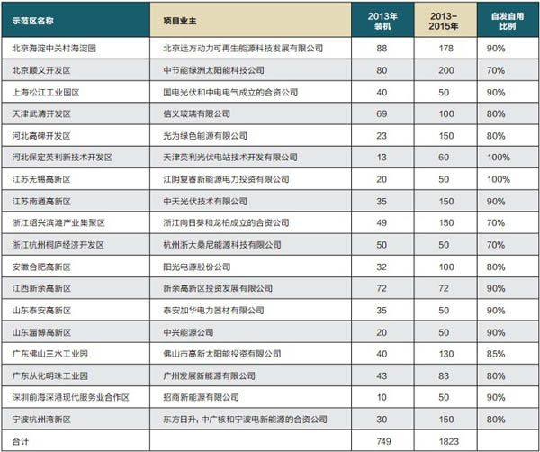 分布式发电18个示范区项目表(单位:MW)