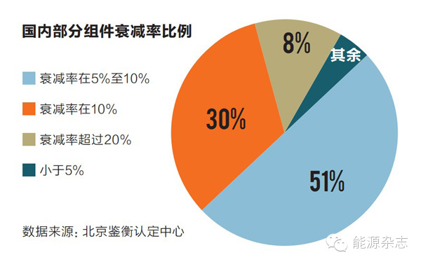 随着大批制造企业加入电站建设的行列,带来的电池组件质量也是参差不齐,表现为热斑、隐裂和功率衰减等质量问题。有消息称,有些厂商承诺25年衰减20%的质保在运行一年后,就达到了衰减底线。为了应对光伏组件的衰减率,电站企业往往以增加安装量来掩盖,“没有人去数电池板,多装点根本看不出来。”