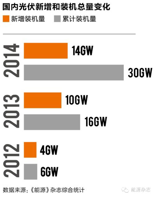 政府为了推动国内光伏市场的拓展,相关政策从上到下曾接连不断。据《能源》杂志记者统计,2012年国家层面下发的与光伏有关的政策多达17项;2013年,同样有15项,涉及部门从国务院到国家发改委、财政部、工信部、国家能源局以及国家电网等多个部委。而今年政策的重点,则体现在各省市地方关于光伏电站(电价、补贴)更加具体的细节出台。这让国内原有的电站市场,正逐步呈现四处开花的局面。