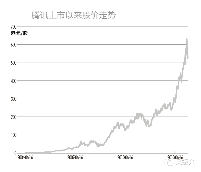 2011年之后,马化腾的套现行为戛然而止,而2012至2014年也是腾讯股价涨幅最大的时段,从200港元下方一直涨至600港元区间,这也令其持有的股票得以大幅增值。