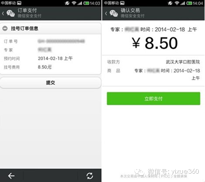 武汉大学口腔医院,作为首家“尝鲜”微信支付的医疗机构,在5月14日的微信公开课杭州站现场,进行了经验之谈。该医院宣传部部长蒋楚剑全面解读了如何借助微信的连接一切的能力,实现医院系统数据与用户信息对接,更精准地为患者提供个性化服务,并加速推动移动医疗服务向智能化、自助化发展的新思路。