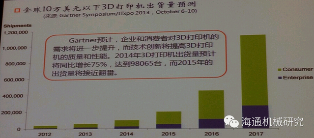全球范围看3D应用服务产值比设备+材料产值合计都高,特别对技术能力较差的中国而言,3D服务尤其值得关注。