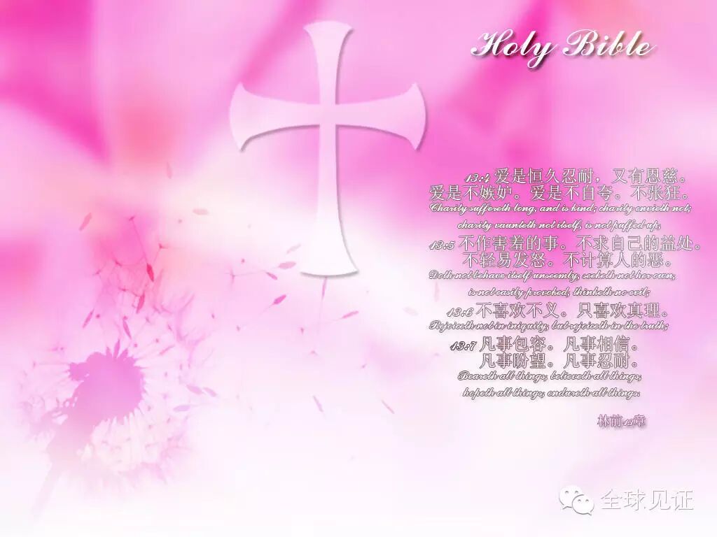 3、" 爱是恒久忍耐,又有恩慈;爱是不嫉妒,爱是不自夸,不张狂,不作害羞的事,不求自己的益处,不轻易发怒,不计算人的恶,不喜欢不义,只喜欢真理;凡事包容,凡事相信,凡事盼望,凡事忍耐;爱是永不止息。"(《新约·哥林多前书》第1 3章4-7节)