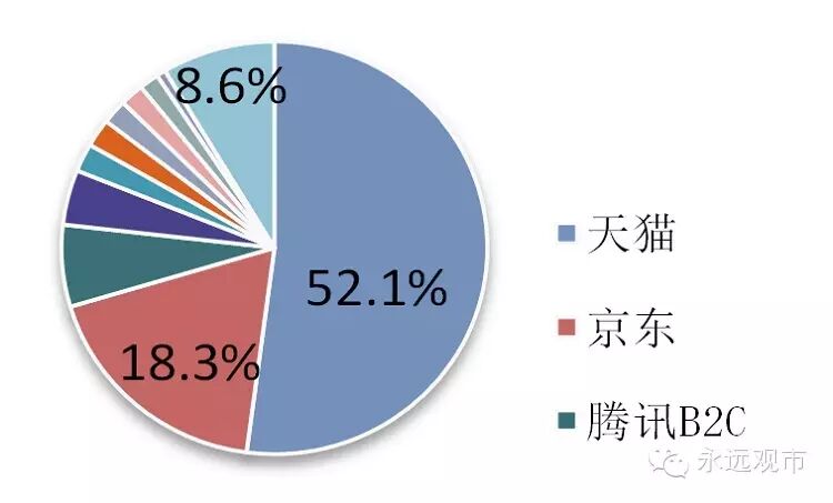 1) 中国最大的在线零售商:市场份额遥遥领先于其他电商,“双11”1天交易额≈100家沃尔玛门店1年销售额。