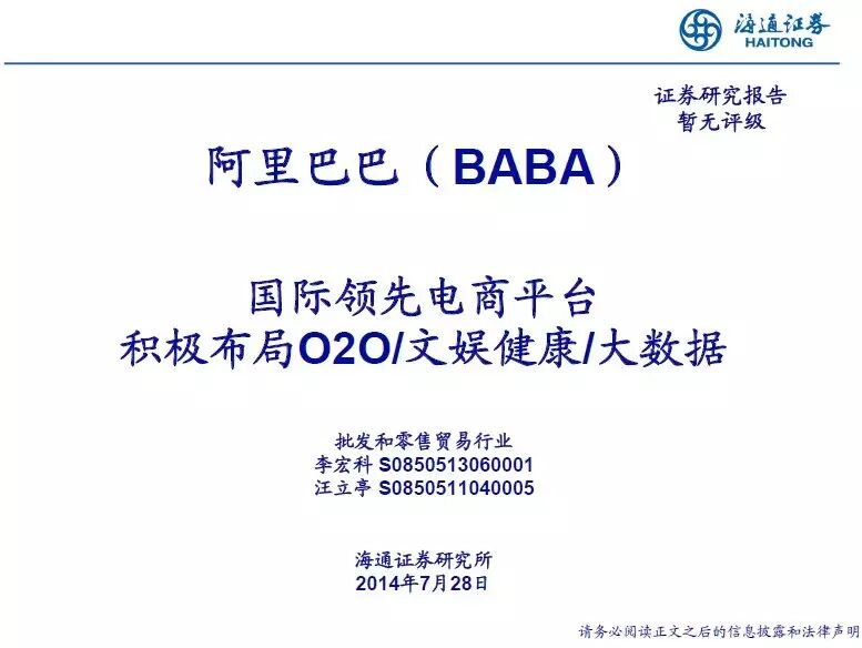【阿里巴巴深度研究】国际领先电商平台,积极布局O2O文娱健康大数据 by 李宏科 汪立亭