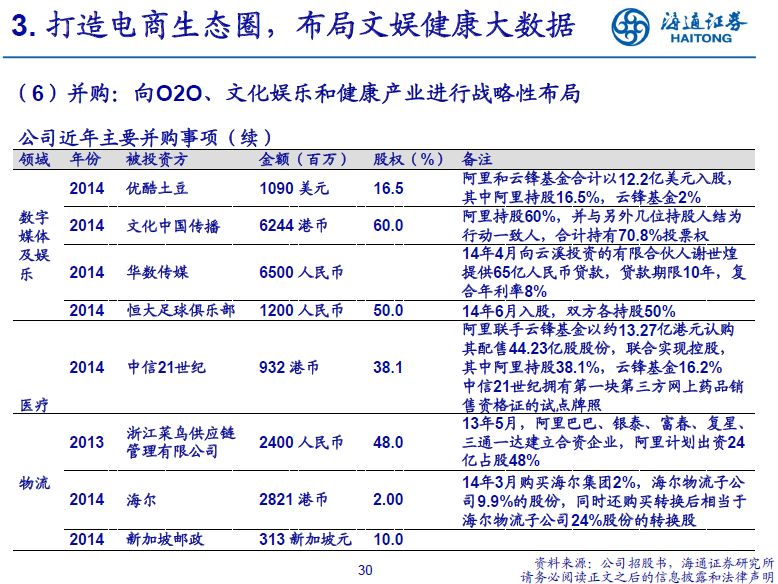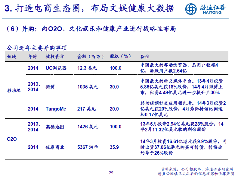 【阿里巴巴深度研究】国际领先电商平台,积极布局O2O文娱健康大数据by
