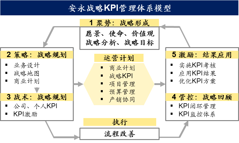 1. 客户价值提升:以客户为中心,打造流程银行。审视移动互联时代的金融业务特点,重新梳理业务流程、风险点,构建战略KPI管理体系(见图),重新设计和优化全行流程。将银行建设成一个有生命力,拥有高度发达的大脑和神经系统的互联智慧组织。