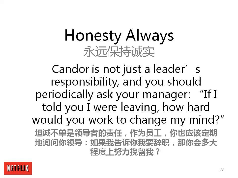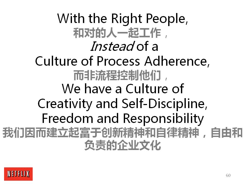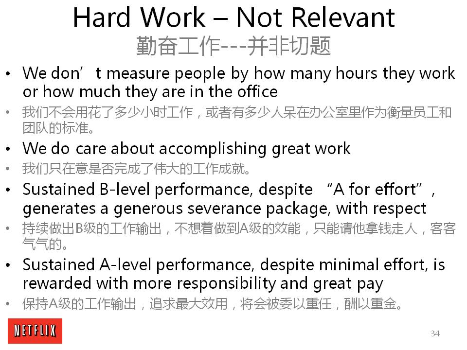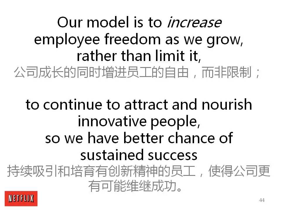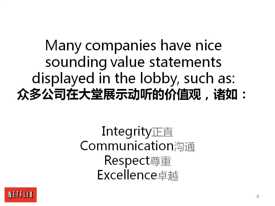 最近读到一份Netflix的企业文化PPT。网上有人将其翻译出来,虽然中文比较怪异,但双语对照,相信对你会有所启发。