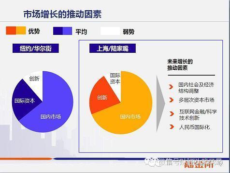 我们先看纽约华尔街,他国内的市场很强,我相信未来五年他还是会有一个稳定的发展,其实华尔街整个的业务流量有很大一块是来自国际市场,来自跨境的业务。第三是他的市场创新多不多?华尔街之前的创新非常多,可是我觉得未来这个是非常有限的。
