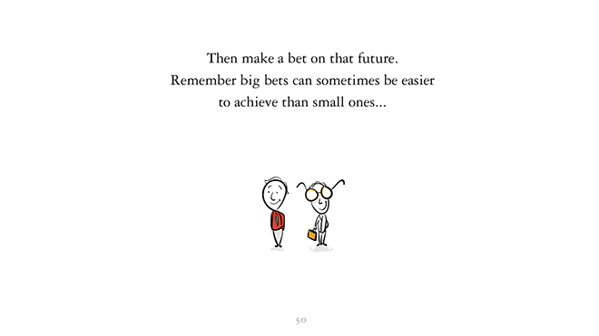 然后,在你想象的那个未来上做赌注。大赌注有时候比小赌注更容易实现。