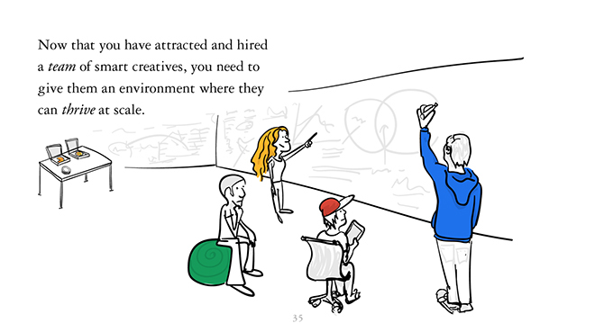 现在你已经吸引并组建了一个充满创意人员的团队,你需要给他们一个放养的环境,让他们可以自由成长。