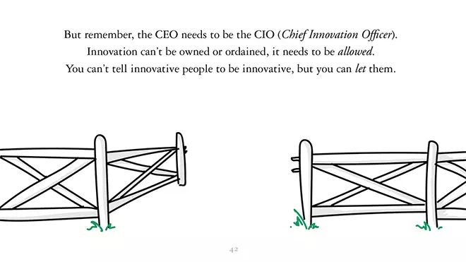 但是请记住,作为 CEO,你还必须是个 CIO(首席创新官)。创新不能被拥有或任命,它需要被允许。命令创意人员让他们进行创新,这不一定有效,正确的方式是放任他们去做。