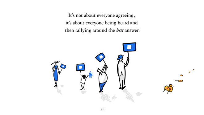 并不是每个人都同意就能称之为“共识”,“共识”意味着每个人都能发声,每个人的意见都能被听到,最终大家团结地站在最好的决策那一边。