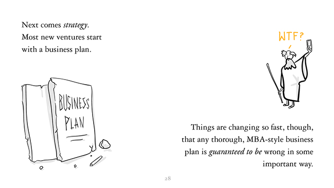 接下来要考虑的便是策略。大多数人开创一份冒险事业前都会做商业计划。但是事物变化得太快,任何完全 MBA 式的商业计划都必定在某些至关重要的方面是错的。