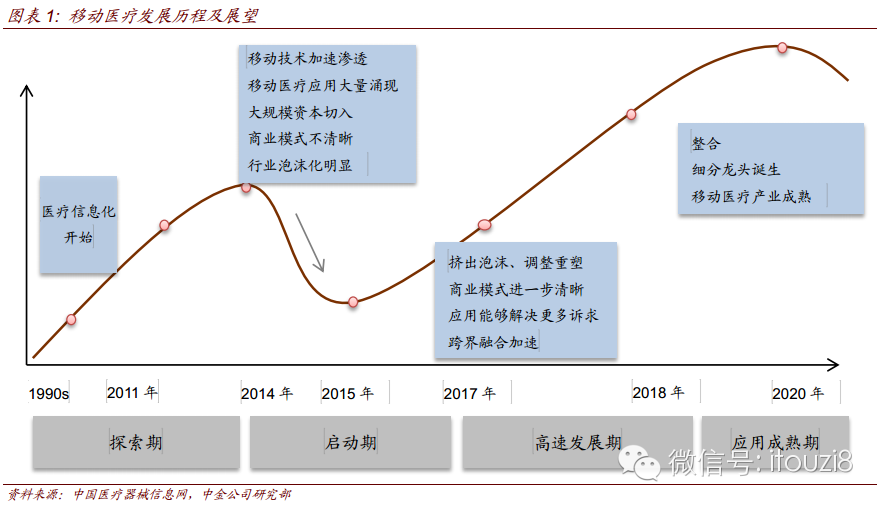 我们认为未来在线医疗服务、可穿戴设备以及医院信息化将是移动医疗发展的三大重点领域。