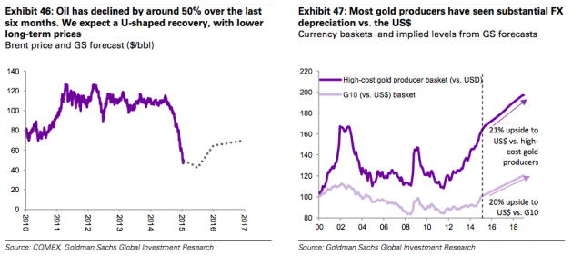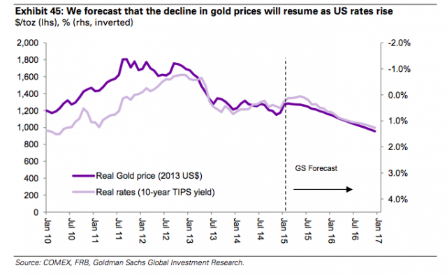 然而,高盛仍然预计2015-16期间,金价将持续下跌。预计2015年第三季度起,随着美联储加息的开启,金价将重回下跌趋势中。欧洲和日本经济失速的局面,也是高盛看跌金价的理由。