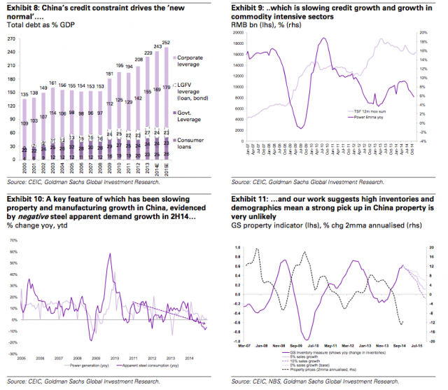 中国的经济转型仍在继续。中国要改变由固定资产投资驱动GDP增长的经济模式,转变成更为依赖对大宗商品需求相对较少的模式,比如依靠服务业来驱动。而信贷增长疲弱以及打击腐败的行动导致了中国经济增长趋缓,从而使得大宗商品需求减少。目前为止,受影响较大的是钢铁产业,高盛预计,2015-2016年间,铜也将成为重灾区。