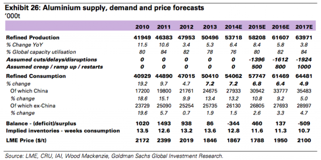 在中国之外的地区,铝的供应量已经不再过剩,高盛预计价格会大幅上涨,涨幅可能会达到2007年以来最高水平。然而也不能够忽视近期需求下降的问题,此外,还需注意中国的铝供应量还在持续走高。