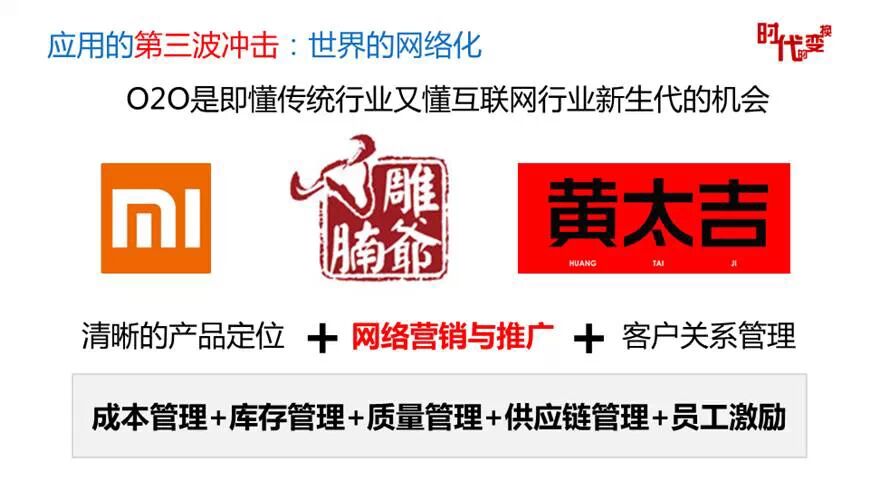 今天宣传互联网思维的时候,以这小米、雕爷牛腩、黄太吉3家为代表。