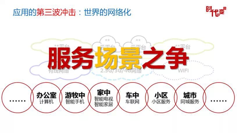 这时候,还用信息入口之争已经太粗了!因此从互联网时代的信息入口之争,转化成移动互联网时代的服务场景之争。