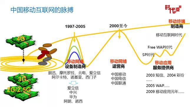 2000年加入了摩托罗拉,参与了移动互联网的网络基础从2G\2.5G\3G每个阶段的建立,没在运营商里工作过,但一年给他们讲100天课,非常了解他们。见证了移动网络设备制造商从高峰走向衰落的过程,在2000年刚进入摩托罗拉的时候,记得团队吃的第一次饭是在顺峰,10个人吃了3400块钱。当时摩托罗拉一天差旅补助450元,住五星级酒店;2011年离开的时候,补贴变成了280元还要交个人所得税,酒店开始住如家,见证了这个行业从辉煌走向没落。看到运营商走到今天利润高点的全过程,也看到了他们已经开始下滑;看到当年SP时代,SP是如何疯狂的赚钱;也理解Free WAP时代SP又是怎样被中国移动梦网打压的悲惨。