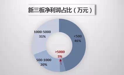 新三板盈利的1988家企业中,盈利超过5000万元的仅有68家,占比3%,其中做市22家,协议46家。