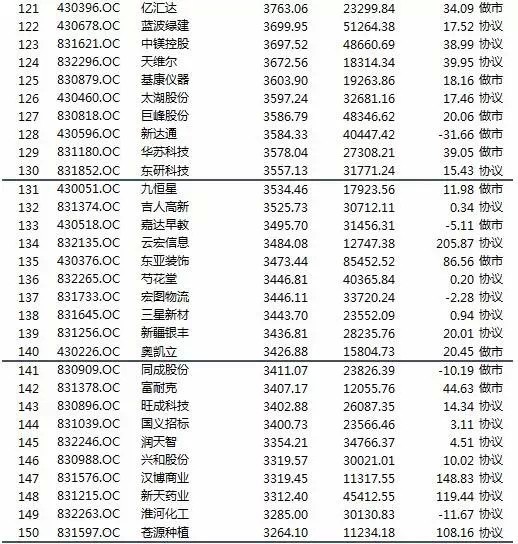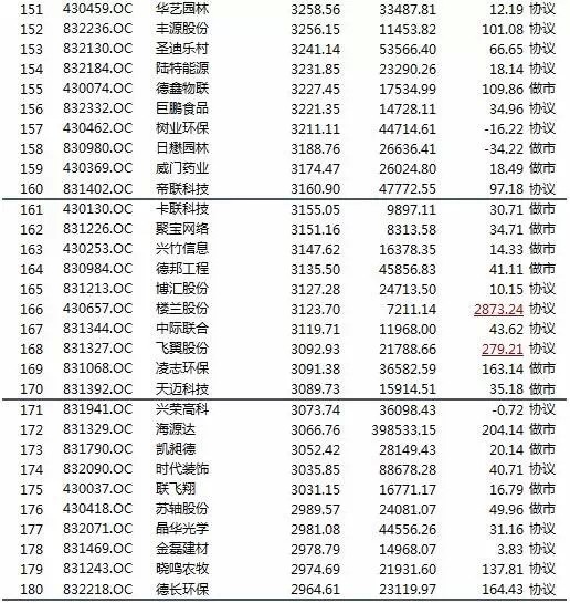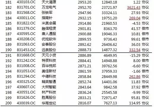 新三板挂牌公司净利润排行榜(前两百)