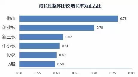 新三板企业多处在成长阶段,62%的企业净利润增长率大于零,企业净利润持续增长。
