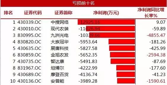 2014年新三板公司亏损排名
