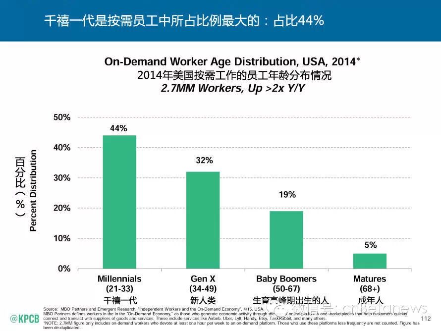 千禧一代是按需员工中所占比例最大的,占比44%。 (来自:腾讯科技)