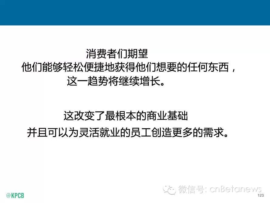 消费者们期望他们能够轻松便捷地获得他们想要的任何东西,这一趋势将继续增长。这改变了最根本的商业基础并且可以为灵活就业的员工创造更多的需求。 (来自:腾讯科技)