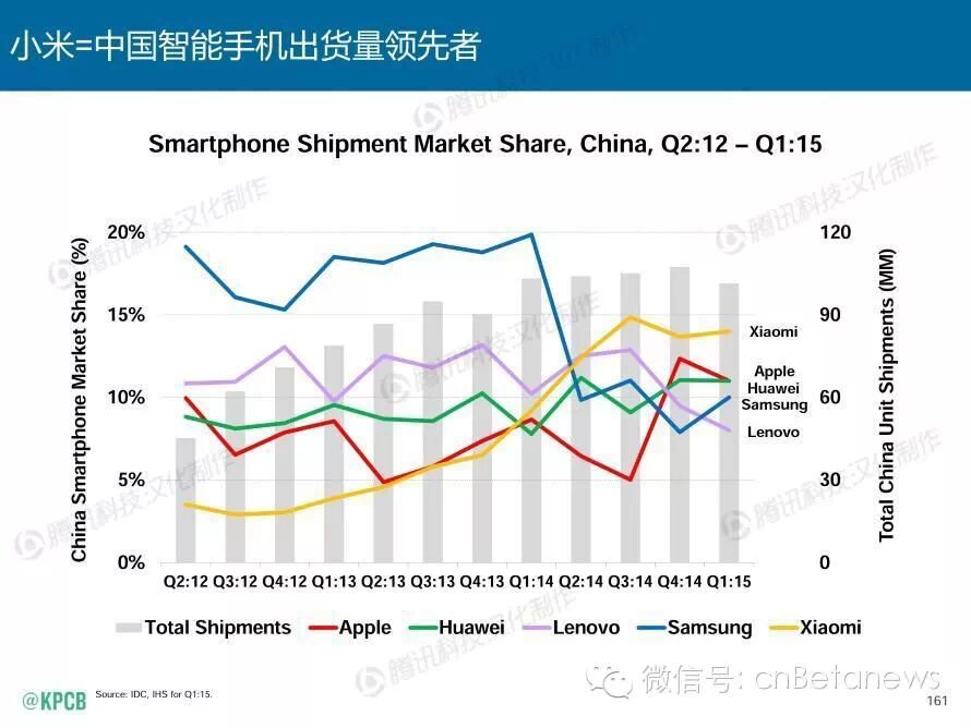 小米成为中国智能手机出货量领先者 (来自:腾讯科技)