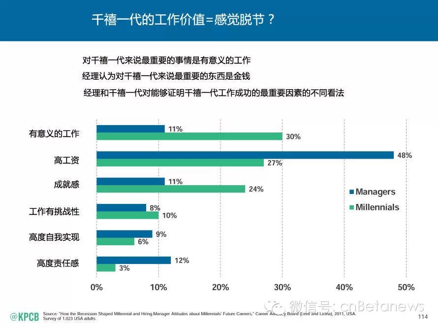 对千禧一代来说最重要的事情是有意义的工作。 (来自:腾讯科技)
