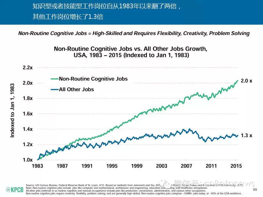 知识型或者技能型工作岗位自从1983年以来翻了两倍,其他工作岗位增长了1.3倍。 (来自:腾讯科技)