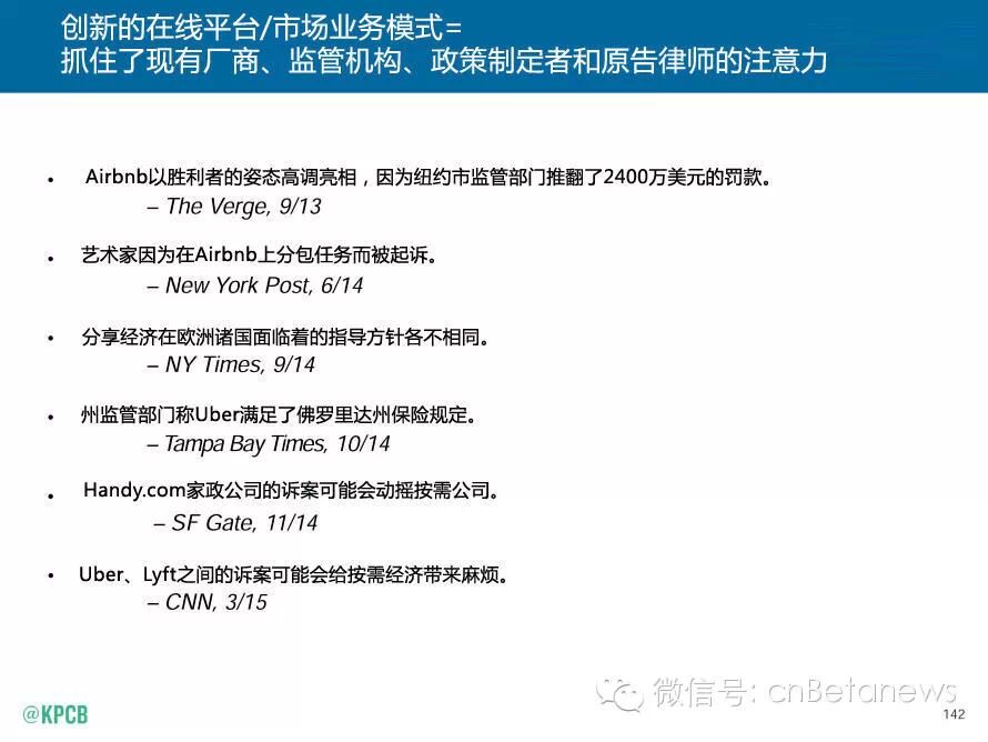创新的在线平台/市场业务模式=抓住了现有厂商、监管机构、政策制定者和原告律师的注意力。 (来自:腾讯科技)