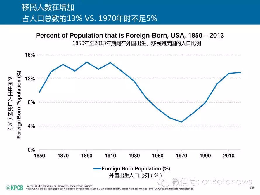 移民人数在增加,1970年时不足5%,现在则有13%。 (来自:腾讯科技)