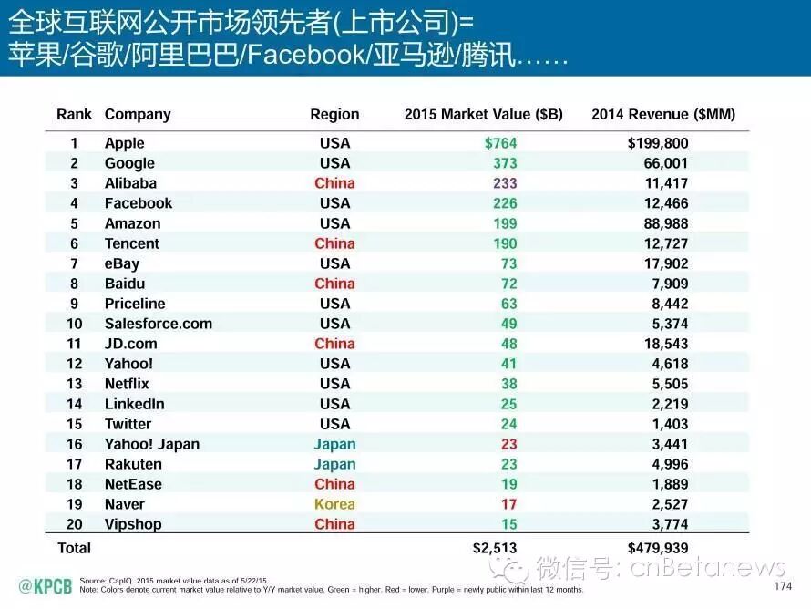 全球互联网公开市场领先者(上市公司)=苹果/谷歌/阿里巴巴/Facebook/亚马逊/腾讯…… (来自:腾讯科技)