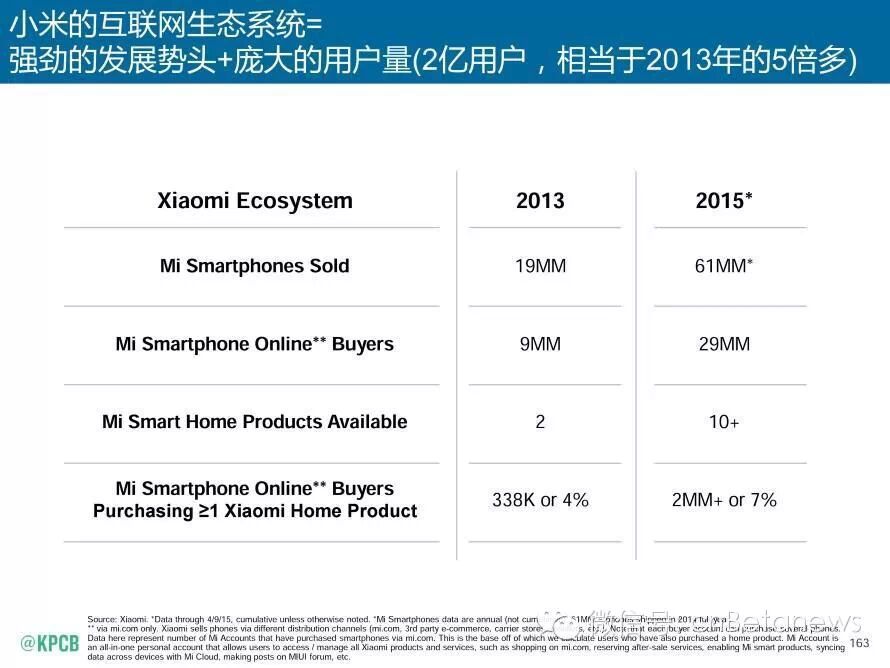 小米的互联网生态系统是,强劲的发展势头+庞大的用户量(2亿用户,相当于2013年的5倍多) (来自:腾讯科技)