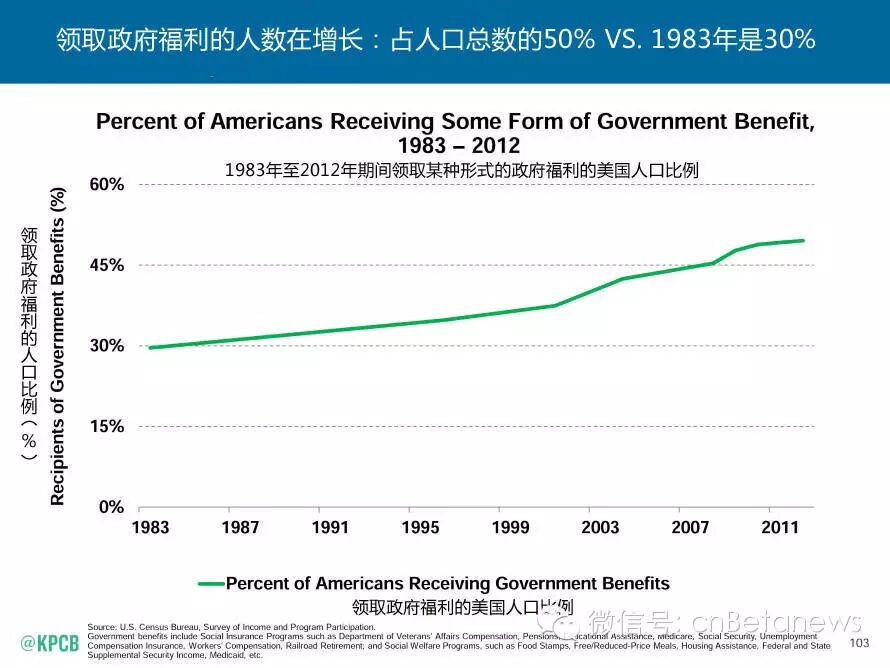 领取政府福利的人数在增长,1983年是30%,2012年占人口总数的50% (来自:腾讯科技)
