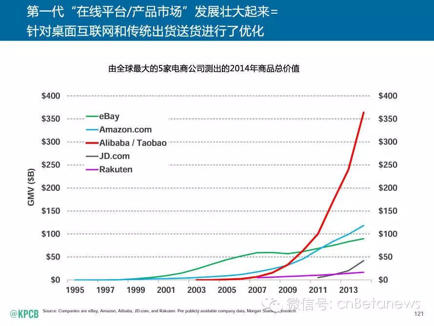 第一代“在线平台/产品市场”发展壮大起来,针对桌面互联网和传统出货送货进行了优化。 (来自:腾讯科技)