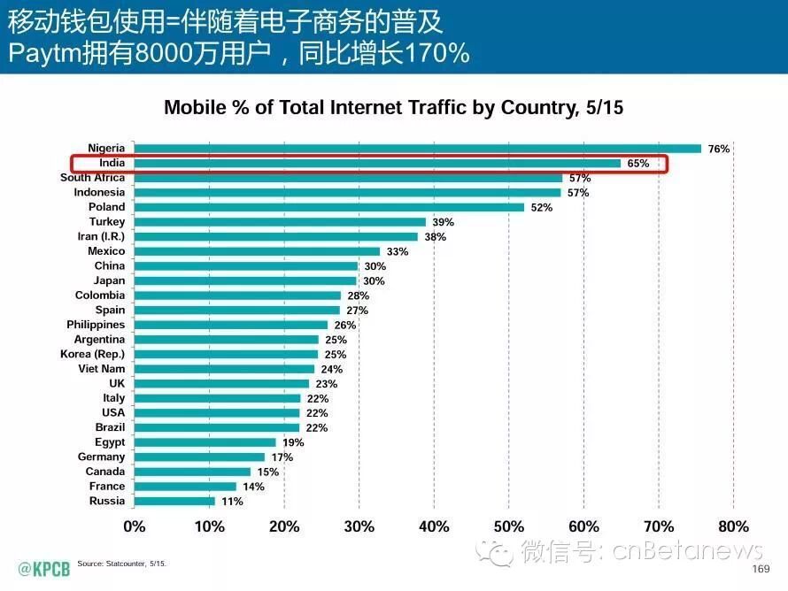 移动端贡献了65%的印度互联网流量,较全球大多数国家更加“移动化” (来自:腾讯科技)