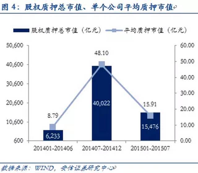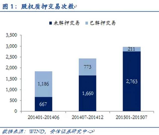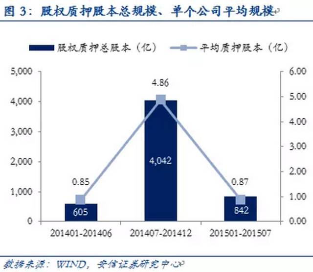 2015年1月-7月期间,973家上市公司总计完成2974次股权质押,质押股本842亿股,参考市值约15476亿元,按照30%-50%的折算率,上市公司约获得资金4643-7738亿元。