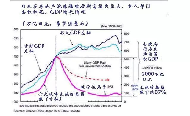 再说日本,这是一个保守的东方国家,跟我们其实很接近,所以他们把泡沫憋的很大,当年日本泡沫破裂的时候,房地产市值是GDP的2倍,也就是比值到达了200%,到1990年,仅东京都的地价就相当于美国全国的总地价。